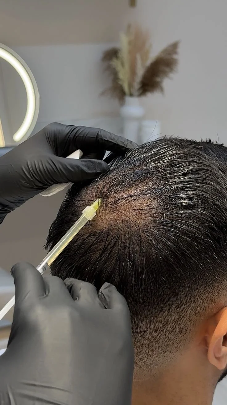 Your skin may appear pink, warm, or slightly swollen for 24–48 hours. If PRP is used on the scalp, tenderness may occur for a day or two. Most clients resume normal activity immediately.
